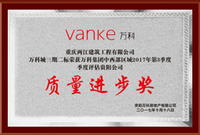 2017年度第三季度评估获质量进步奖