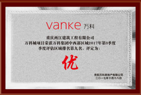 万科E区三期二标荣获万科集团中西部区域2017年3季度综合评估第一名