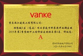 2019年荣获万科花溪项目优秀项目部奖